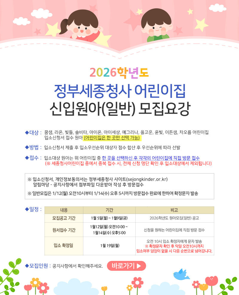 2026년도 정부세종청사 신입원아 추가모집 안내